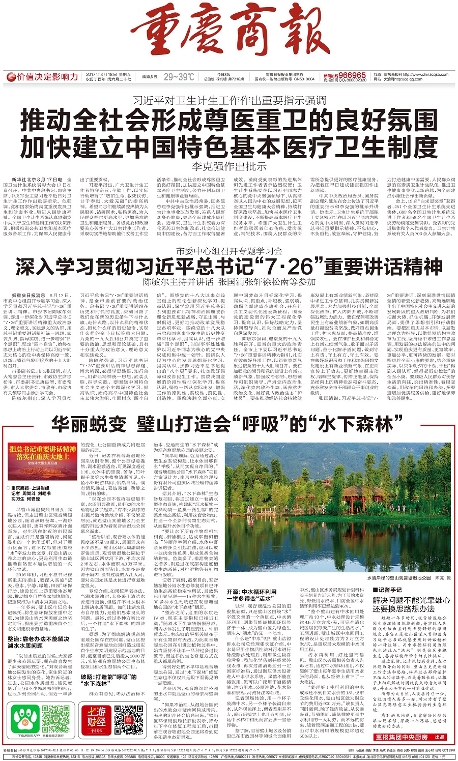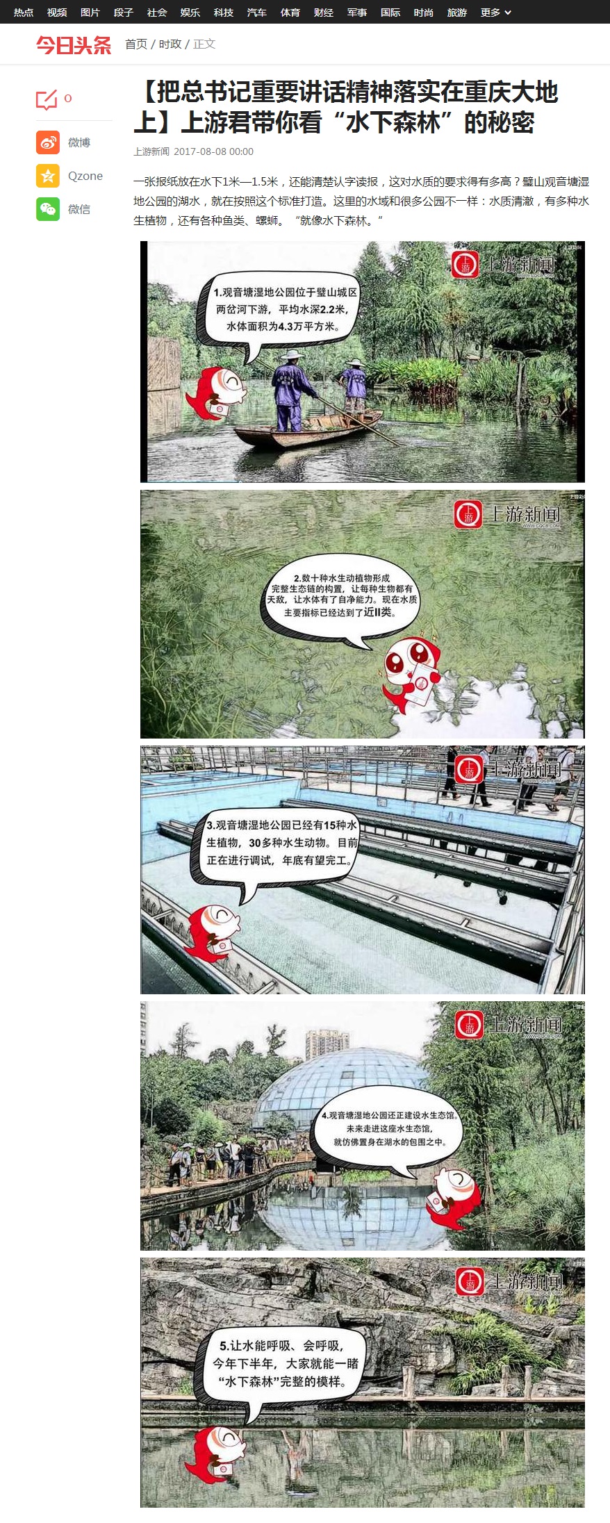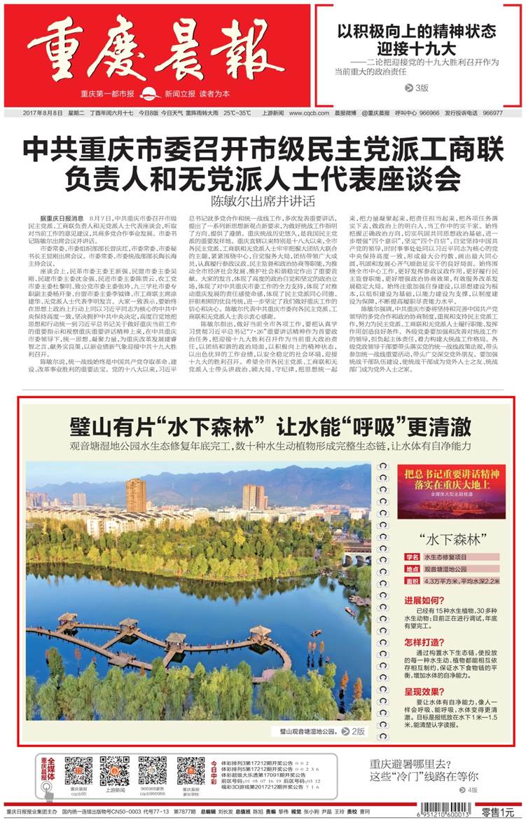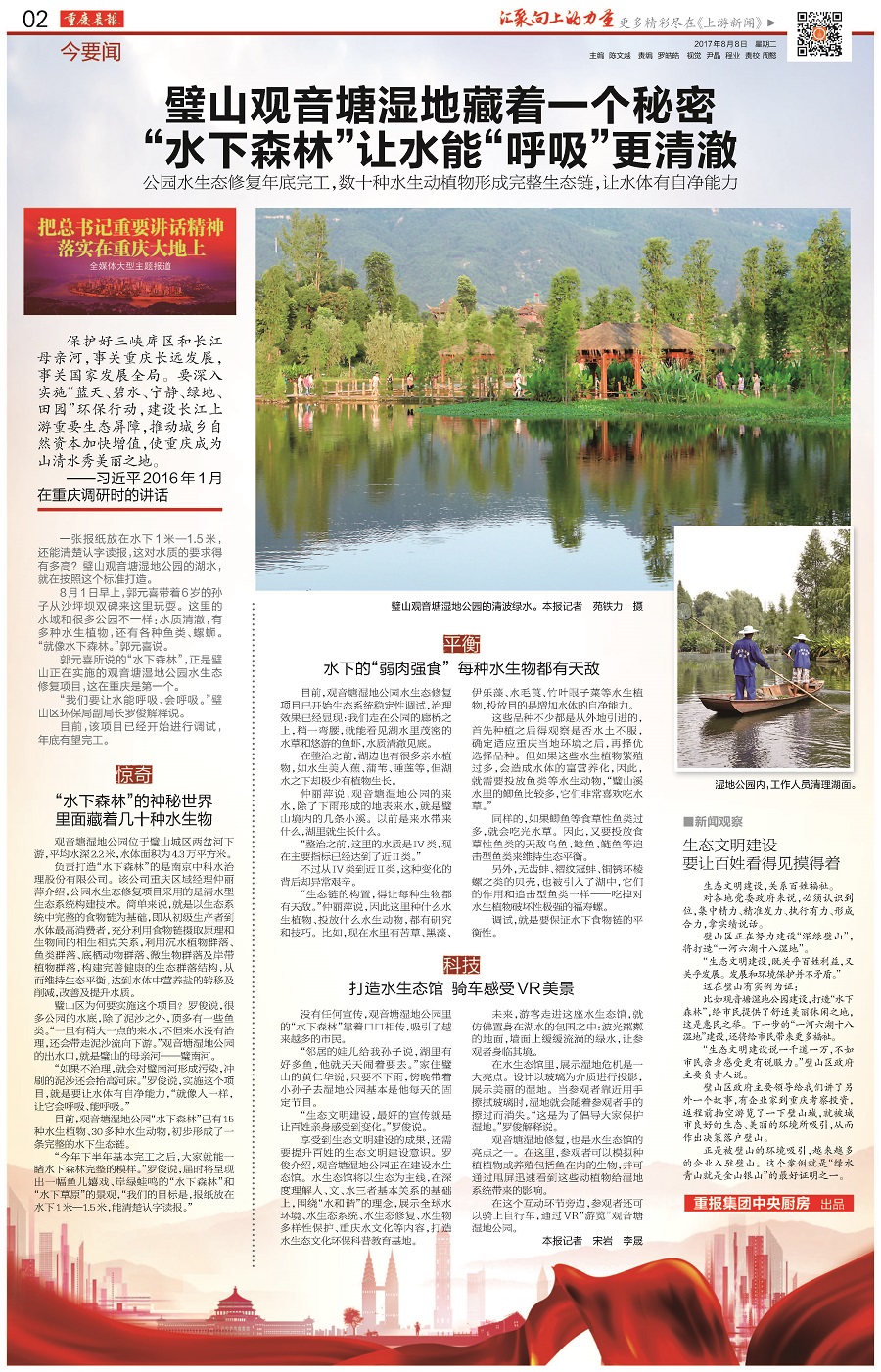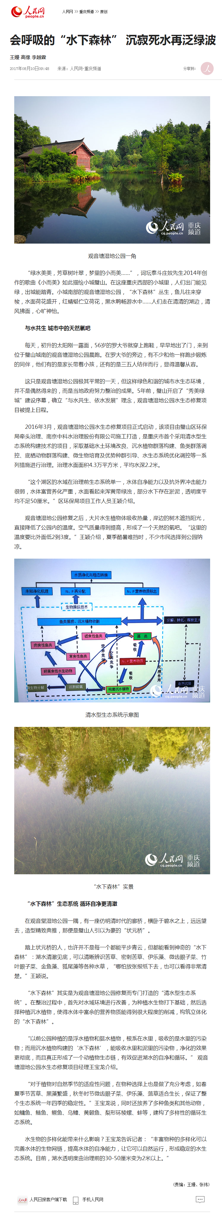重慶日報、重慶之聲、重慶電視臺、重慶晚報、重慶晨報、重慶商報、華龍網、《當代黨員》雜志社等市級主流媒體記者,來到觀音塘濕地公園,實地探訪了“水下森林”建設情況,采訪了項目設計施工單位【南京中科水治理股份有限公司】工作人員。觀音塘濕地公園項目是由中科水治理傾力打造的精品水生態修復項目,也是重慶市首個生態文明建設示范基地。