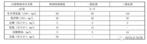 規模大于 2m3 /d(含)的新建農村生活污水處理設施,水污染物排放限值按下表對應的規定執行。