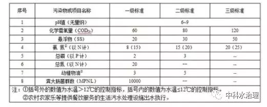 規模小于 2m3 /d(不含)的新建農村生活污水處理設施,水污染物排放限值執行下表中三級標準。