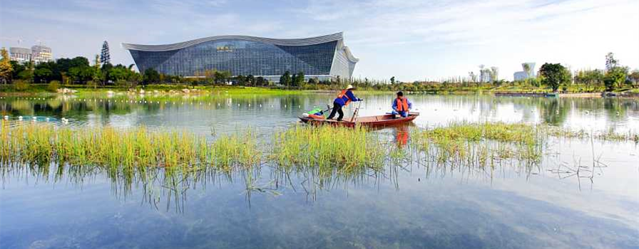 錦城湖3#、4#湖清水型生態(tài)系統(tǒng)構(gòu)建工程位于成都高新區(qū)內(nèi),是成都高新區(qū)投資建設(shè)開發(fā)有限公司打造的198項(xiàng)目,3#、4#湖水面總面積為21.23萬 m2。3#湖最大水深5.5m,4#湖最大水深3.2m。
